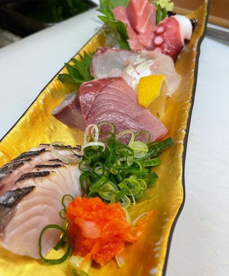【一人前1180円(税込)/二人前1980円(税込)/三人前2700円(税込)】大将が、毎日市場で仕入れる季節のお魚を4~5種類。入れて欲しいお魚があれば承ります。