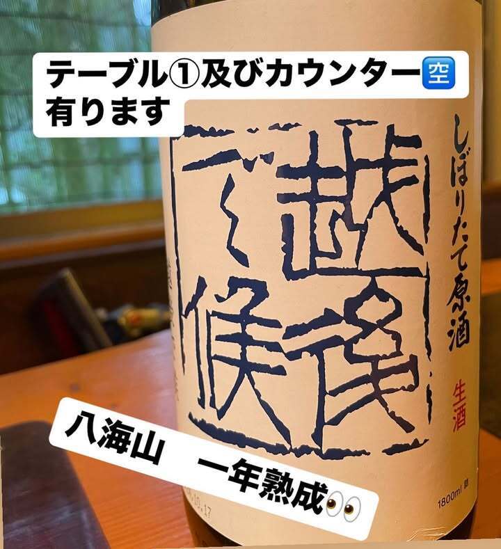 テーブル席①及びカウンター全席、空いてますー💨